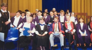 Iain MacDougal was extremely talented on the piano and helped out with a few solo numbers as well. The Chancellor had said “no repeats during the different ceremonies” (except for the Processional and the Recessional) so the repertoire was large, thankfully. Under Robin’s baton the choir also performed in community events, singing carols for the residents at the Aranda Nursing Home, Carols by Candlelight on the lawns of Calvary Hospital, and joining in a song service with the Salvation Army Band at the City Temple in September 1996.